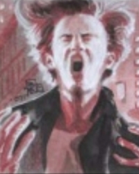 Brian Kong draws several trading cards, this portrait features: Peter