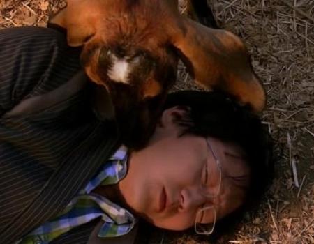 After Hiro receives a punch from Kensei, a goat licks his face.
