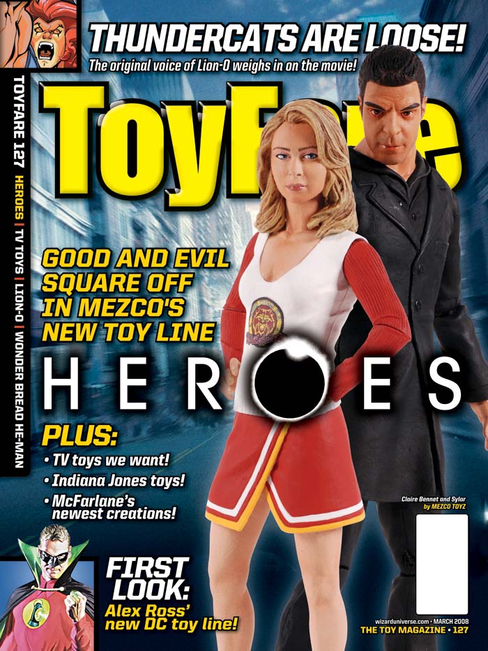 Heroes action figures are featured on the cover of the March 2008 issue (#127) of ToyFare magazine (available January 9, 2008).