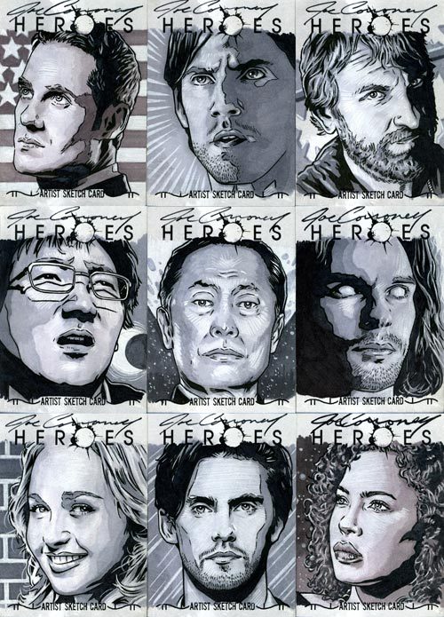 Joe Corroney draws several trading cards.