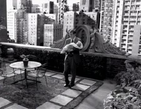 Atop Charles Deveaux's rooftop, Mr. Bennet holds Claire for the first time.