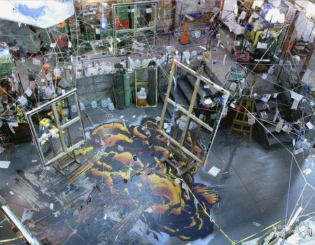 Hiro and Ando find Isaac's apartment covered in a string web timeline.