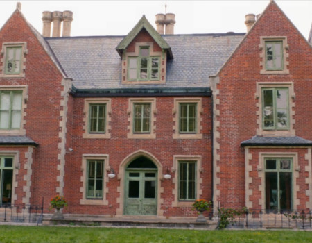 The outside front entrance of Sunstone Manor is visible as James Dearing escorts Carlos Gutierrez there as his fake prisoner.