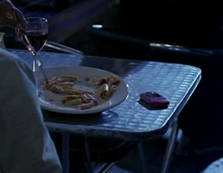 As Claude uses his invisibility to steal money out of diners' wallets, the Symbol appears in his victim's pasta.