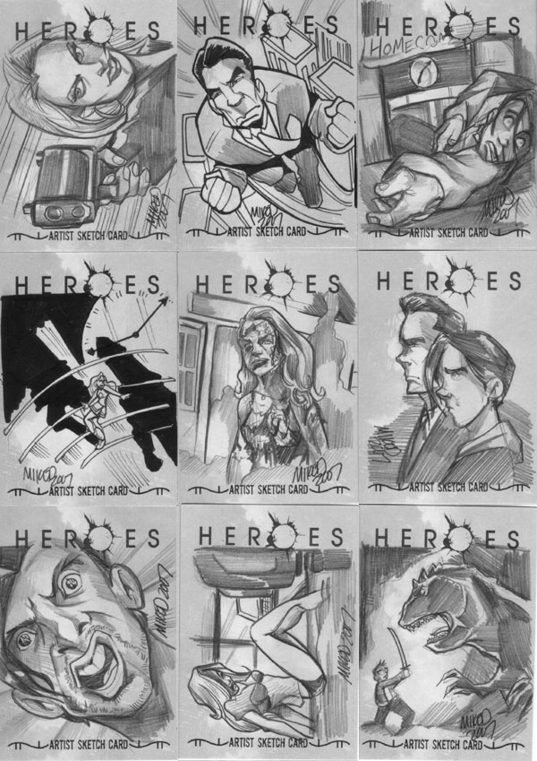 Michael Duron creates several trading cards.