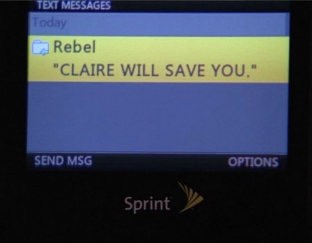 Rebel sends a message to Eric Doyle's Sprint phone that Claire can save him.