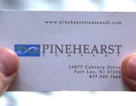Mohinder shows Tracy a card from the Pinehearst Company.
