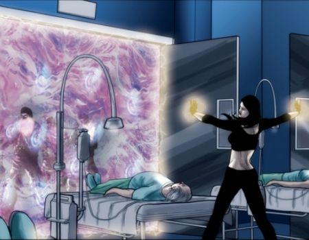 Abigail uses her forcefields to hold off Danko's team in Building 26.
