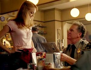 The same painting, completed by Peter, shows the figure standing over the brainless corpse of a cheerleader, red paint dripping from the canvas. The body was once thought to be Claire's, referencing the message, "Save the Cheerleader, Save the World".