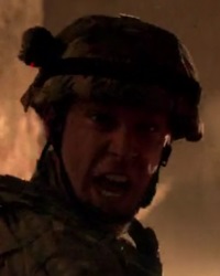 Again subject to Matt's telepathy, Carlos experiences a flashback of the commanding officer yelling orders at him just before the officer died.