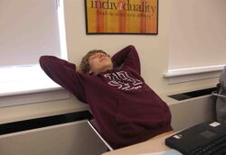Evan Smith uses his power to sit back and relax while he is supposed to be doing schoolwork. | |