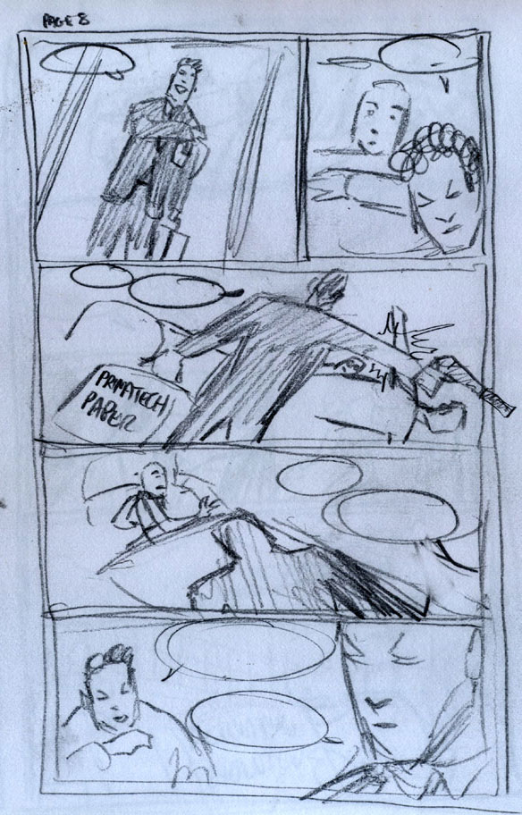 Jason Badower draws the layout for page 3 of Blackout, Part 2.