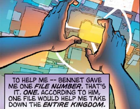 Hana attempts to locate the file Mr. Bennet told her would help take down the Company.
