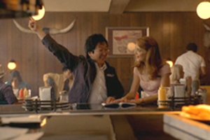 As Charlie speaks with Hiro at the Burnt Toast Diner, Hiro points, just as Isaac's sketch predicted.