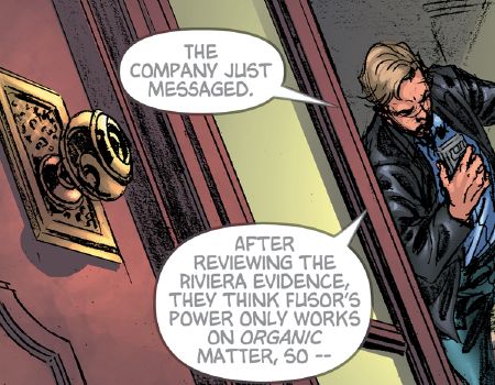 Upon entering the Paris hotel where Rollo Fusor is staying, Claude receives an instant message from the Company.