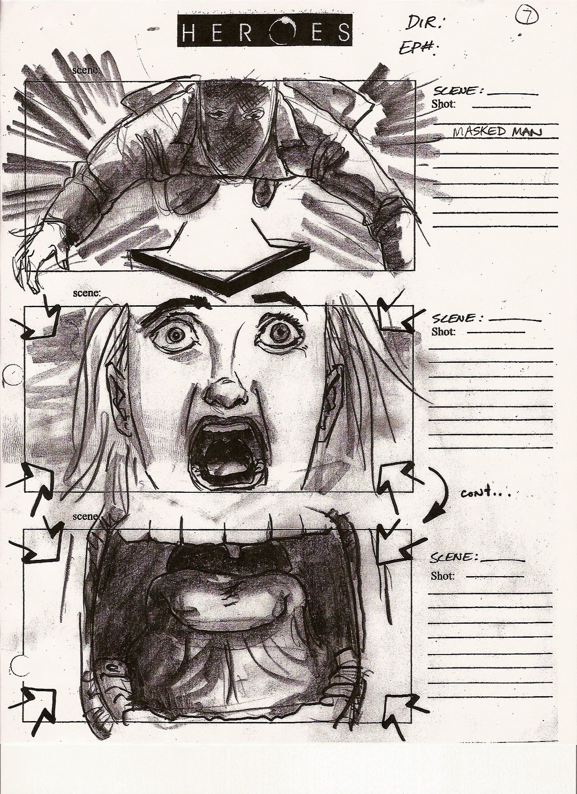Cesar Lemus storyboards page 7 of the scene from The Line in which West and Claire get revenge on Debbie.