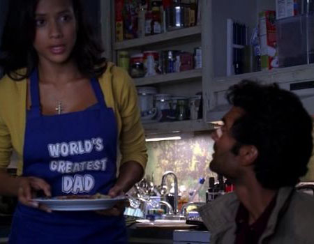 While Mohinder is working on perfecting a cure for Maya's power, she comes over to clean up and tries to convince him to come with her outside, to be social. Mohinder, showing the darker side of his new powers, gets angry and scares Maya away.