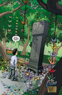 After returning from the future, Hiro Nakamura pays tribute to his grandfather at the Hiroshima Peace Memorial.
