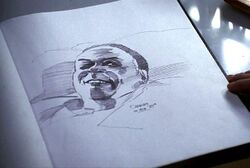 When Peter and Simone arrive at Isaac's apartment, Isaac and his paintings are nowhere to be found. His sketchbook is still there and Simone shows Peter a sketch that Isaac made of Charles Deveaux for his seventieth birthday.