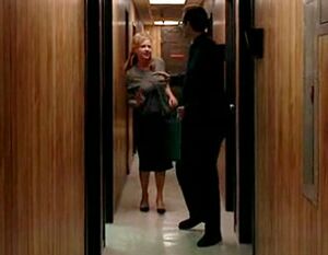 Mr. Bennet runs into Lisa in the hallway at Primatech Paper Co..