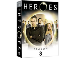 The Heroes Season Three DVD is a DVD recompilation of the third season of Heroes. The list price of the standard 6-disc DVD set is $59.98; the cost for the 5-disc Blu-ray set is $79.98. All 13 episodes from Volume Three and 12 episodes from Volume Four are included. Subtitles are available in English, Spanish, and French. The DVD set was released on September 1, 2009.