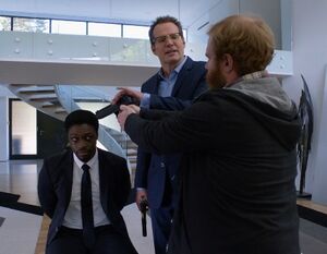 Sandra's discovery of Noah's gun is reported to Thompson. (Company Man )