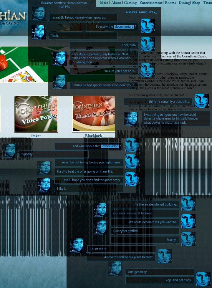 Micah and Hana IM each other while hacking into corinthianlasvegas.com