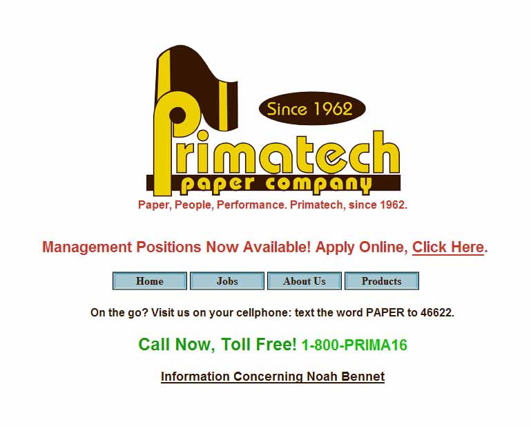 primatechpaper.com's new homepage.