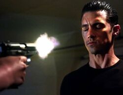 Three years into the future, Claire bursts into a terrorist cell firing two guns. A terrorist magnetically forces the guns out of her hands.