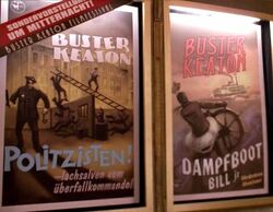 - The German movie poster reads "Sondervorstellungen um Mitternacht! Buster Keaton Filmfestival", which means "Special performances at midnight! Buster Keaton film festival". The films shown on the posters are Cops and Steamboat Bill, Jr.