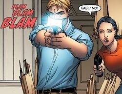 Meanwhile, the German smashes through the door of the Berlin hotel room where Gael is resting, and the German quickly clamps Gael to the wall with the metal support bars from the bed. Devin and Bianca, guns at the ready, arrive at the hotel room just as the German shoots Gael in the stomach. Devin then shoots a few rounds at the German. Devin misses, but this buys Bianca enough time to free Gael and help him into the hotel hallway. The German then uses his ability to send multiple rounds from his gun into Devin, killing him. Next, Gael hands Bianca a gas canister from one of their backpacks. Bianca opens the canister and throws it into the hotel room, partially obstructing both the German's vision and breathing. The gas doesn't affect Bianca'a breathing due to her ability, so she easily knocks out the German, capturing him alive.