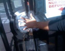 Two split images supplied by evsdropr do not show the German's face, but claim to show his ability at work: one image is of his ability applied to the controls of an elevator and the other example appears to be either on a phone booth or entrance. It is unknown exactly what effect the ability had, but in both demonstrations it did create a ripple-like visual distortion in the air similar to one created when a stone is dropped in a pool of water. In the two examples, the ripple emanates from the palm of his hand; different hands are used for each example.