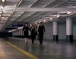 Peter and Claire meet Nathan in a parking garage.