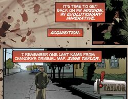 In Virginia Beach, Sylar approaches the home of the last name he remembers from Chandra Suresh's original map: that of Zane Taylor. Just as he's wondering how he'll find new victims, Zane answers the door, calling him "Dr. Suresh" — and Sylar has his answer.