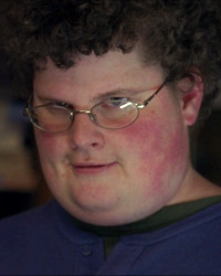 The patron is at Sam's Comics while Claire talks to Vic about her new job. Pretending to browse comic books, all the patrons are actually ogling the attractive Claire.
