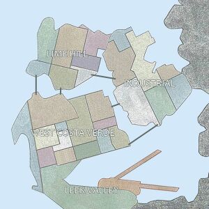 The game takes place in the fictional town of Costa Verde, California, originally conceived by writers of Heroes. It is the home of Heroes characters Claire and Noah Bennet and their family, as well as West Rosen and Alex Woolsly. The city is divided into four districts. West Costa Verde is home to the major tourist attractions in town, featuring several beaches and seaside resorts, and also includes Downtown, which lies in the centre of the city, and is the financial and commercial hub. Towards the east is Industrial, the workhorse of Costa Verde, sitting upon a desert and home to rows of factories and lower-class housing. In the south is Leek Valley, which is filled with farmlands and is popular for outdoor getaways. A freeway runs from Downtown through Leek Valley, leading to Los Angeles. In the north is Lime Hill, the polar opposite of Leek Valley and the higher-class residential district.
