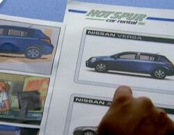 Upon arriving at the Los Angeles International Airport, Hiro attempts to rent a Nissan Versa. Ando reminds him they have a connecting flight to New York, but Hiro shows him the comic where they rent a car. The Hotspur employee says the Versa is "a popular choice", but she has one left which Hiro and Ando rent and use to get to Las Vegas.