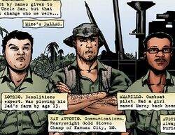 The soldiers proceed down the Mekong in a gunboat. Loredo catches Austin with an unauthorized personal item and threatens to throw him overboard, but Dallas refuses to make an issue out of it, confessing that he, too, has an unauthorized item: a letter from home. At that moment, the soldiers are attacked by Viet Cong scouts. Dallas is shot in the abdomen, Loredo is taken out by a sniper's headshot, and Amarillo and San Antonio are killed. After the engagement, only Dallas and Austin remain alive, and Dallas is badly wounded. Austin lays his hands on the wound, and it is instantly completely healed.